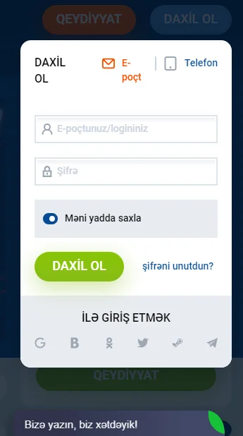 | 💬Oyunçular üçün canlı dəstək | E poçt – [email protected], Telegram, WhatsApp |